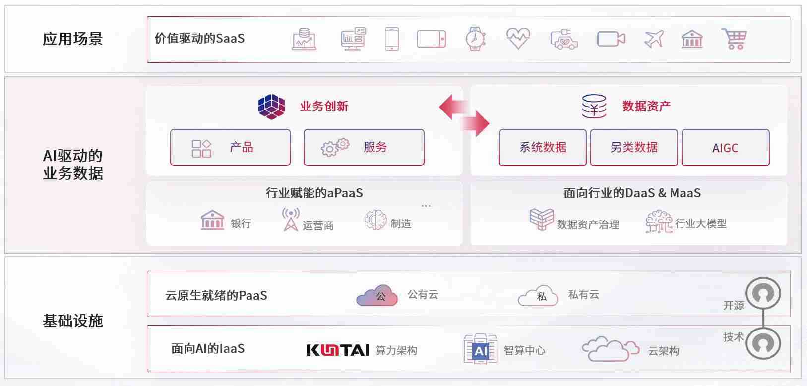 数字时代,,,围绕企业数字化转型的关键要素,,,,人生就是搏数码开创性的提出数云融合战略和技术体系框架,,,着力在云原生、、、数字原生、、AI原生和信创产业上架构产品和服务能力,,为处在不同数字化转型阶段的快消零售、、、、汽车、、、金融、、、、医疗、、政企、、教育、、运营商等行业客户提供泛在的敏捷IT能力和融合的数据驱动能力,,,构建跨界融合创新的数字业务场景和新业务模式,,,,助力企业级客户建立面向未来的核心能力和竞争优势,,全面推动社会的数字化、、、、智能化转型升级。。