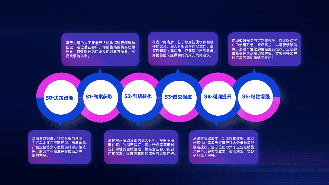 通过拓宽潜在客户来源、、、、优化线索分配并提高到店转化率,,,以增强销售效率。。同时,,利用线索数据不断优化分析模型,,,有效提升转化率,,扩大营销影响力。。。。